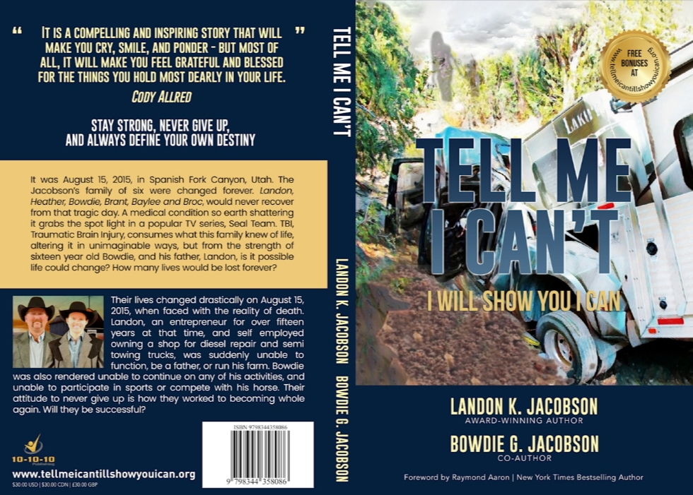 In Tell Me I Can’t… I’ll Show You I Can… Landon and his co-author and son, Bowdie G. Jacobson, walk readers through the raw and deeply personal aftermath of their family’s crash. Through the wreckage and recovery, they offer more than just a survivor’s story—they offer hope. Their journey is not only about learning to live with Landon’s traumatic brain injury (TBI), but about finding a new purpose in spite of it.
