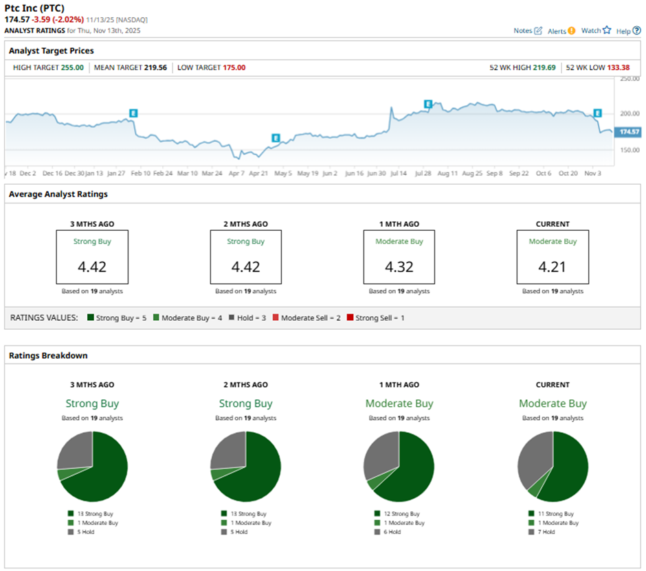 On Nov. 10, Mizuho cut its price target on PTC to $180 and maintained a “Neutral” rating.