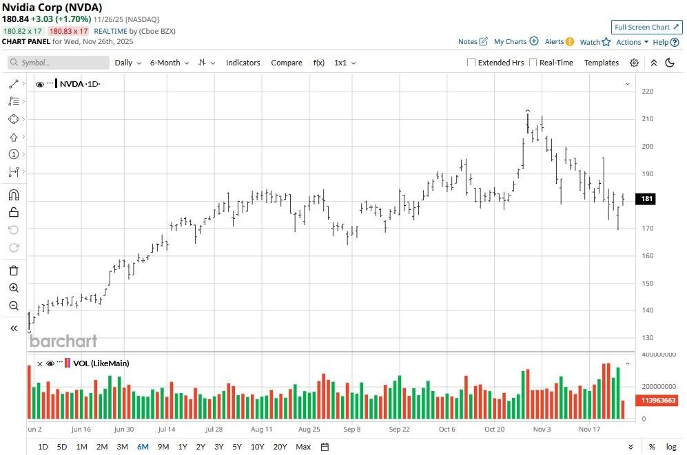 Despite today’s gain, Nvidia stock is down some 15% versus its year-to-date high set in late October.