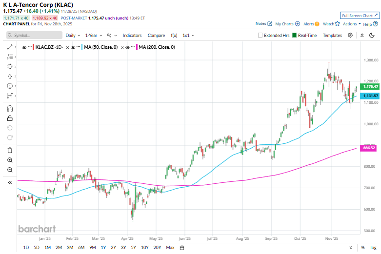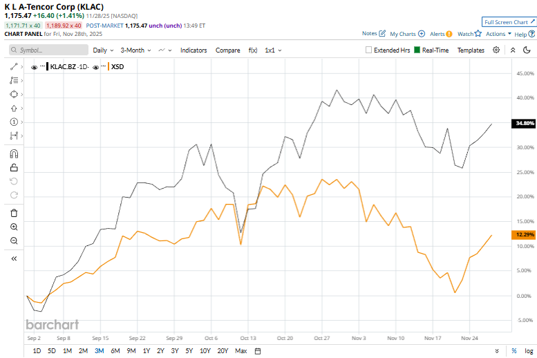 This tech giant has dipped 8.5% from its 52-week high of $1,284.47, reached on Oct. 30. Shares of KLAC have gained 31.5% over the past three months, outperforming the SPDR S&P Semiconductor ETF (XSD), which has gained about 9.6% during the same time frame.