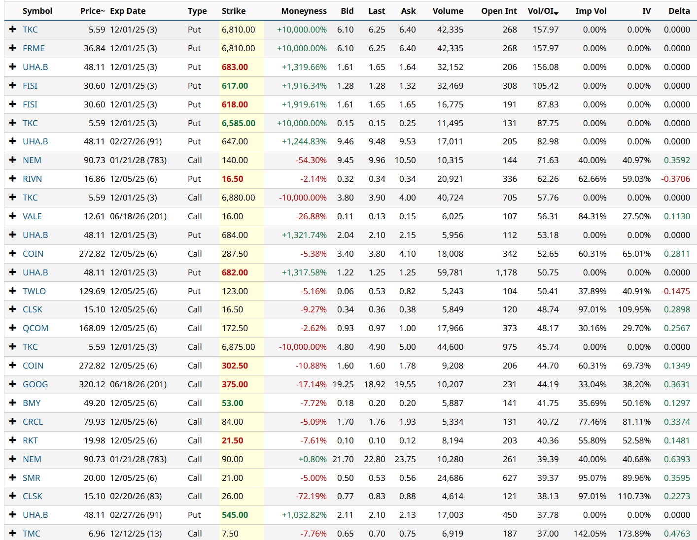 NEM, RIVN, VALE, COIN, TWLO, GOOG and BMY all experienced unusual options activity last week.