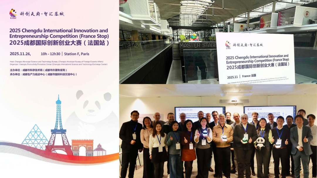 On November 26, 2025 Chengdu International Innovation and Entrepreneurship Competition (France Stop) was successfully held at Station F in Paris, France, with the Chengdu sub-venue participating via video. The event was hosted by the Chengdu Science and Technology Bureau (Foreign Experts Bureau of Chengdu) and organized by the Chengdu Productivity Promotion Center (Chengdu International Science and Technology Exchange Center). This cross-border scientific innovation event integrated the innovation and entrepreneurship dynamism of Chengdu with the romantic and artistic charm of Paris. Focusing on key areas such as artificial intelligence, digital cultural creative industries, low-altitude economy, intelligent connected vehicles, energy and environmental protection, and silver economy, the event attracted 58 innovation and entrepreneurship projects. Through two rounds of initial reviews, six outstanding projects advanced to the finals.